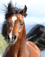 Phenotypically Sahran is masculine, there is no mistaking that he is a stallion. He has a rounded and more compact shape but he is not short by any means. His head is definitely from his dam and so is his personality. This family is loaded with character and really fun to be around. However, they can be a bit challenging because of their high spirits. When there is a presentation at the farm Sahran will literally cruise the crowd looking to see if he is being admired and he seems to enjoy that time very much.