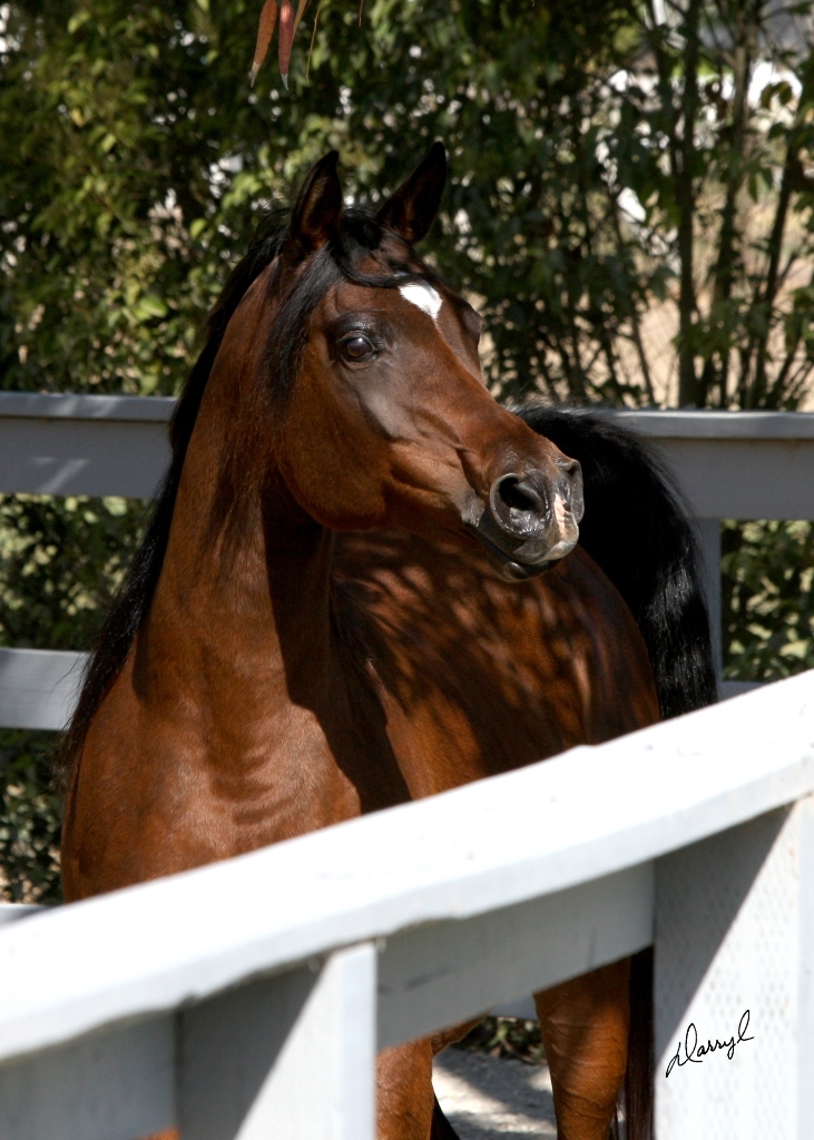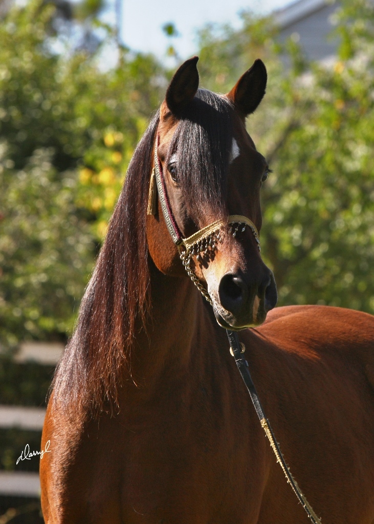 Sam is a very spirited mare, yet sensible and kind,...she will however challenge some people! Physically, she is very pretty and although she is not an extremely tall mare, she is very well proportioned and balanced. Perhaps her strongest quality is her movement and carriage, which I see as a trait carried over from her dam. Samura and her three-quarter sister Sahbine (Ruminaja Ali x Glorietasayonaara) represent the second generation of this mare family.