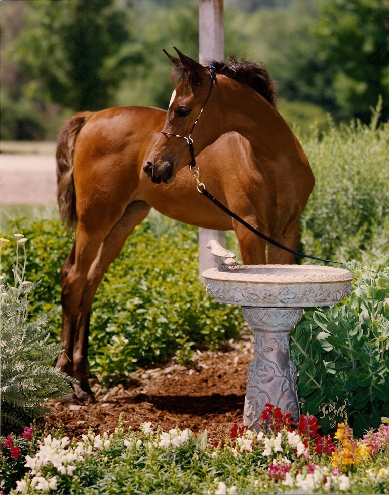 Samura is the second daughter of our foundation mare, Glorietasayonaara and sired by the handsome bay stallion, Anaza El Farid (Ruminaja Ali x Bint Deena by *Ansata Ibn Halima). Samura was foaled April 30, 1995; she was everything Henry and I hoped for, first it was a filly and a super one besides.