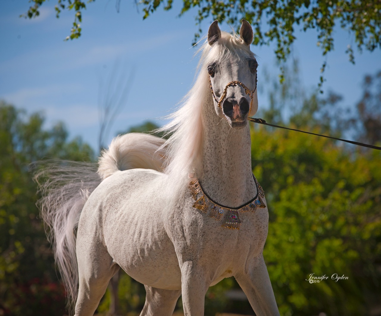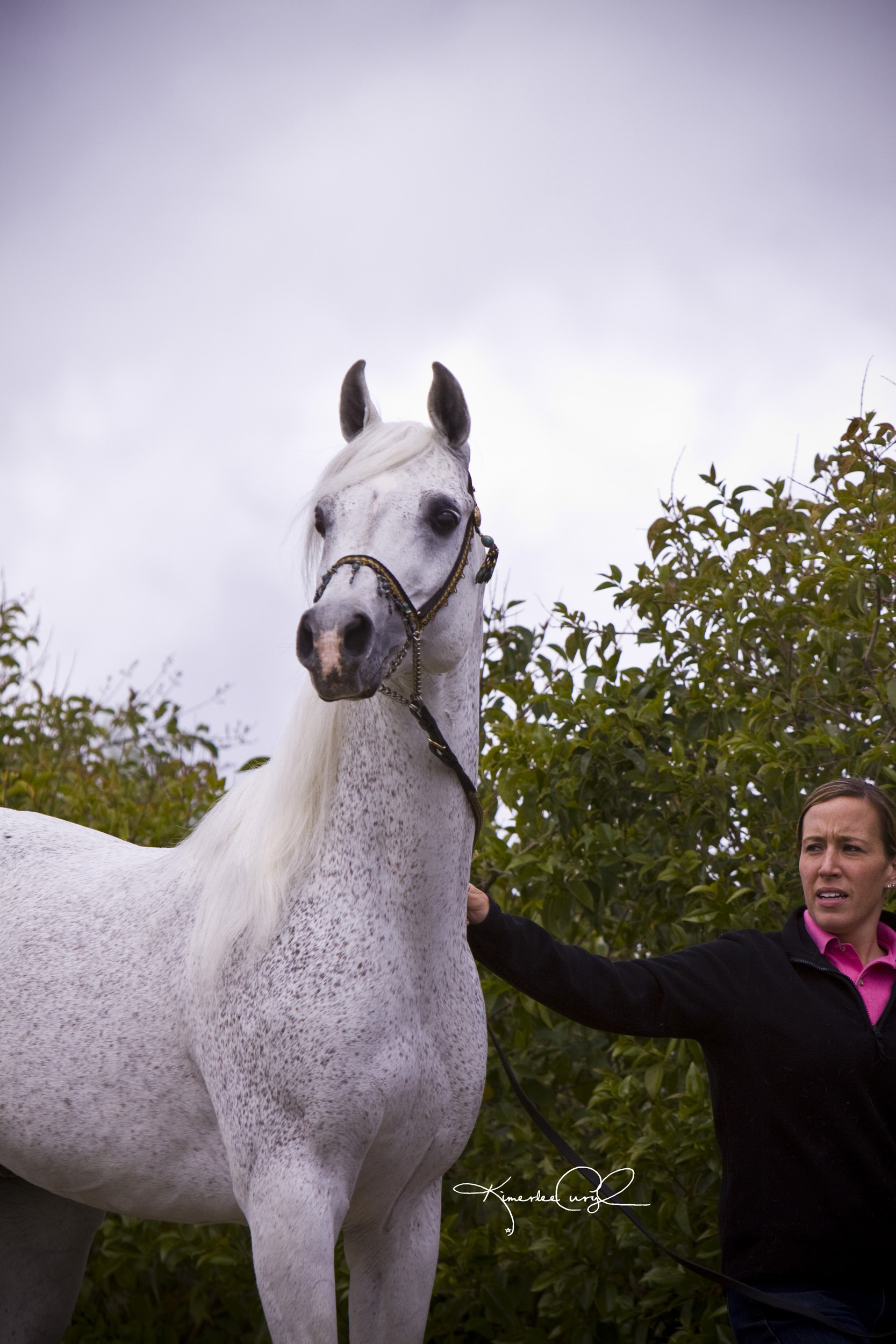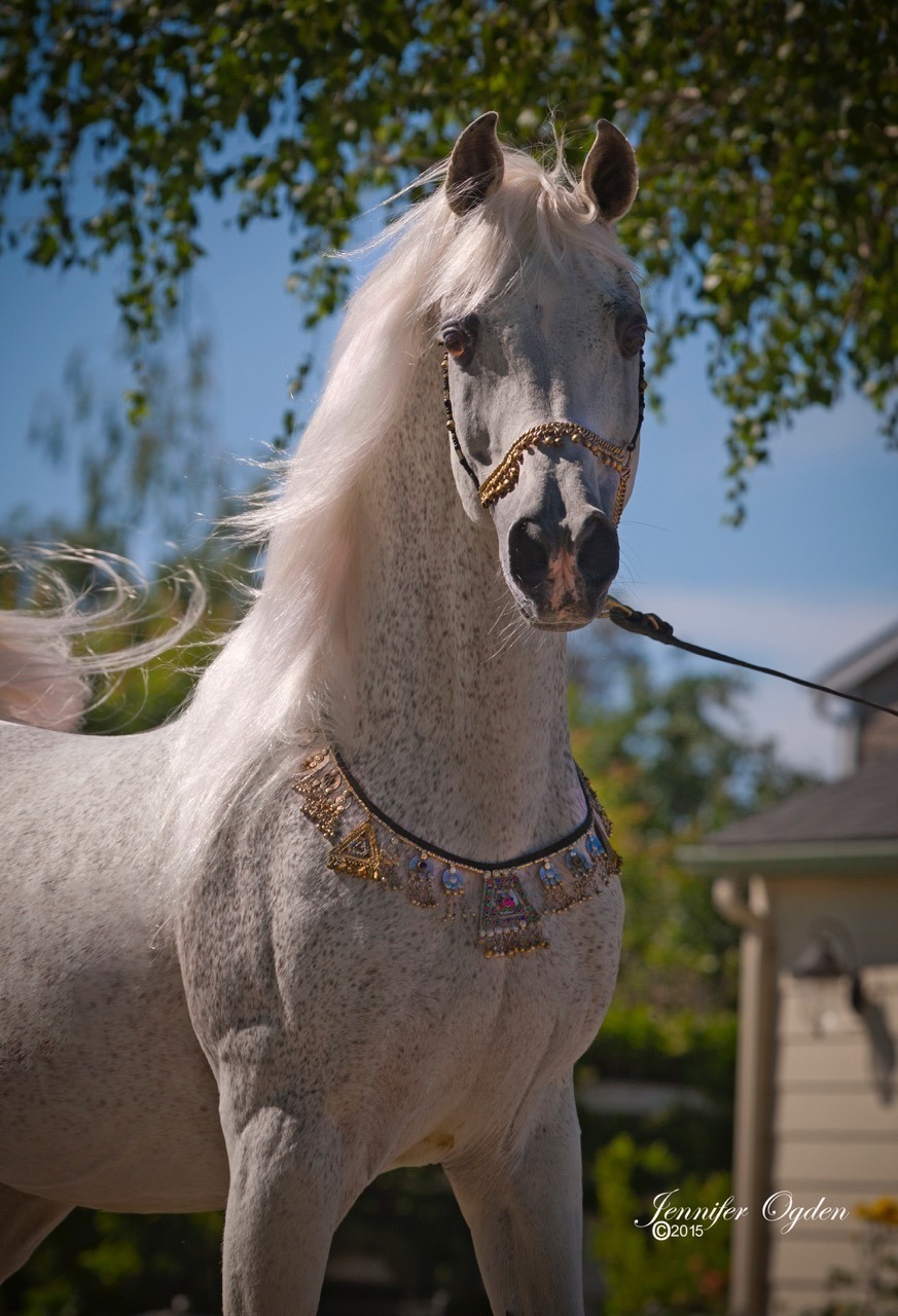 This year as Saroukh became 21 we began to see him aging more, this is not surprising as he is now into his twenties. Still, it gives me a pang to realize he is our eldest stallion at the farm now. I adore this big boy! Since Shai has passed on it seems Saroukh took a new role on as the leader in the barn and it shows in his more serious approach to everything, even when greeting visitors. Before he was more of a clown and I kind of miss that role he played for so long. I don't think we give the horses enough credit for the affect that losing herd mates has upon them. His daughters have been our next giant leap in quality with their produce. They continue to show with every foal an amazing ability to produce exceptional foals. Sidon SMF, his son, was on lease this year and will possibly be next year as well to Trevor Miller and Arlene Padilla for the Zee King daughters they have. This should be an awesome cross of bloodlines. Trevor showed him at the Golden Gate "A" Show this spring in both Amateur (Champion) and Open Stallion (Reserve Champion) and he was also a Top Five (3rd) at the Region III show in Reno with Trevor handling. This winter he will be trained under saddle so watch for him next year! Saroukh daughters are rarely shown by us because they are just so valuable that it is not worth it to take the risk. However, 2 daughters were shown minimally; Bint BInt Sayo was the 2014 Foal Festival Gold Champion Produce of Dam and Jade Lotus SMF was Reserve Supreme Champion Mare at the 2009 Egyptian Event. His daughters, Danikah SMF (x Dance Diva by Raquin RA) is in foal to Jasoor SMF for a 2016 foal and Divine's Gift (x Dance Divine SMF by Simeon Shai) is in foal to Symbolic SMF for 2016. The weaving of Shai and Saroukh has been a beautiful blending. Also keep your eye on Hadi Al Jood the 2014 grey Ali Saroukh son out of Hadarah SMF owned by Mohamed Jaidah of Qatar.