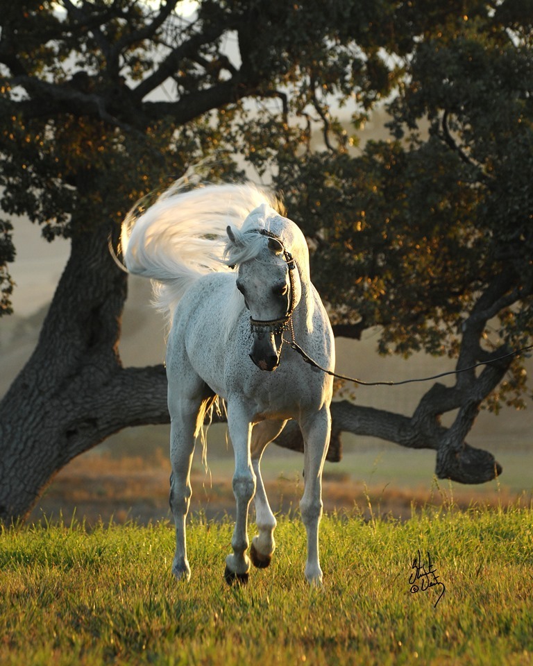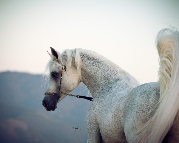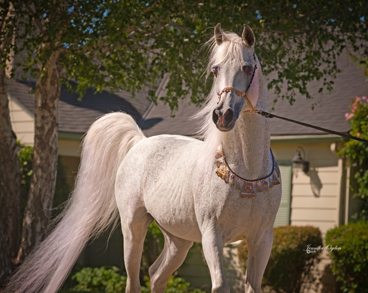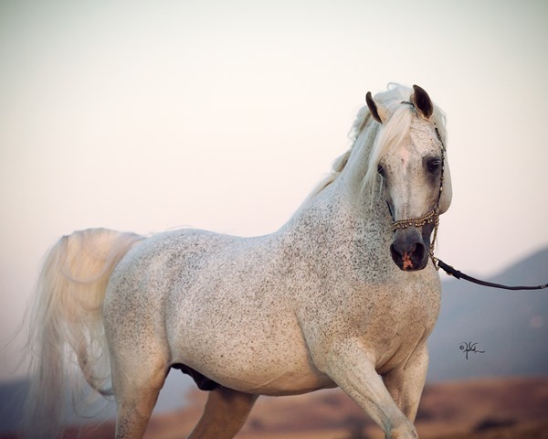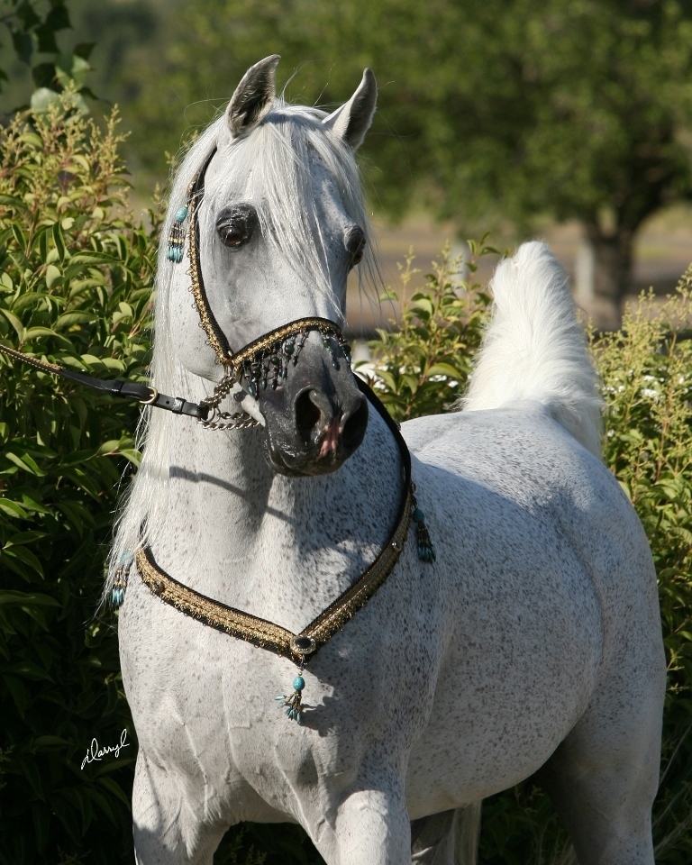 This year as Saroukh became 21 we began to see him aging more, this is not surprising as he is now into his twenties. Still, it gives me a pang to realize he is our eldest stallion at the farm now. I adore this big boy! Since Shai has passed on it seems Saroukh took a new role on as the leader in the barn and it shows in his more serious approach to everything, even when greeting visitors. Before he was more of a clown and I kind of miss that role he played for so long. I don't think we give the horses enough credit for the affect that losing herd mates has upon them. His daughters have been our next giant leap in quality with their produce. They continue to show with every foal an amazing ability to produce exceptional foals. Sidon SMF, his son, was on lease this year and will possibly be next year as well to Trevor Miller and Arlene Padilla for the Zee King daughters they have. This should be an awesome cross of bloodlines. Trevor showed him at the Golden Gate "A" Show this spring in both Amateur (Champion) and Open Stallion (Reserve Champion) and he was also a Top Five (3rd) at the Region III show in Reno with Trevor handling. This winter he will be trained under saddle so watch for him next year! Saroukh daughters are rarely shown by us because they are just so valuable that it is not worth it to take the risk. However, 2 daughters were shown minimally; Bint BInt Sayo was the 2014 Foal Festival Gold Champion Produce of Dam and Jade Lotus SMF was Reserve Supreme Champion Mare at the 2009 Egyptian Event. His daughters, Danikah SMF (x Dance Diva by Raquin RA) is in foal to Jasoor SMF for a 2016 foal and Divine's Gift (x Dance Divine SMF by Simeon Shai) is in foal to Symbolic SMF for 2016. The weaving of Shai and Saroukh has been a beautiful blending. Also keep your eye on Hadi Al Jood the 2014 grey Ali Saroukh son out of Hadarah SMF owned by Mohamed Jaidah of Qatar.