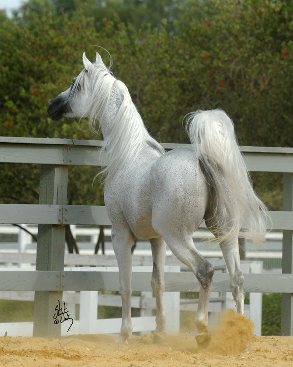 This year Saroukh is twenty years old and for some reason this hits me as much older than nineteen! Silly but true. He sired a colt for Al Jood Stud in Qatar that is exquisite this spring. Look for Hadi Al Jood on our Foals page. The other mare in foal to him unfortunately lost her colt sired by Saroukh in a late term abortion, very sad. His daughter Haalani SMF gave us another filly by Symbolic but this time she is grey, we named her Hadeel. Bint BInt Sayo by Saroukh gave us possibly the best colt we have ever bred by Noble this year, his name is Shazad SMF. The Glorietasayonaara family continues to be the main one at SMF improcing each year. If you want a foal of his or to breed to him hurry up!!