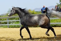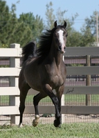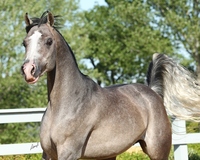Jasoor had his first foal, a colt this year out of the mare Jada SMF (Majestic Noble SMF x Jade Lotus SMF by Ali Saroukh) . Jada's owners, Athala KIng and Maureen McCormack of Athala Arabians leased her to us for this foal. He is everythig we want and in the tradition of this family he will be named with a "J" name, this time Jabril SMF. He is upright and very exotic and of course grey sice his dam is homozygous for the grey color gene just like his grandsire, Majestic Noble SMF and grand dam Jade Lotus SMF. However, Jasoor has sired severl bays like his sire, Simeon Shai for clients and happily we report they are all fillies! Right now he is bieng trained under saddle and is enjoying the work so much....every horse needs a job in order to have a bright personality and keep them happy.