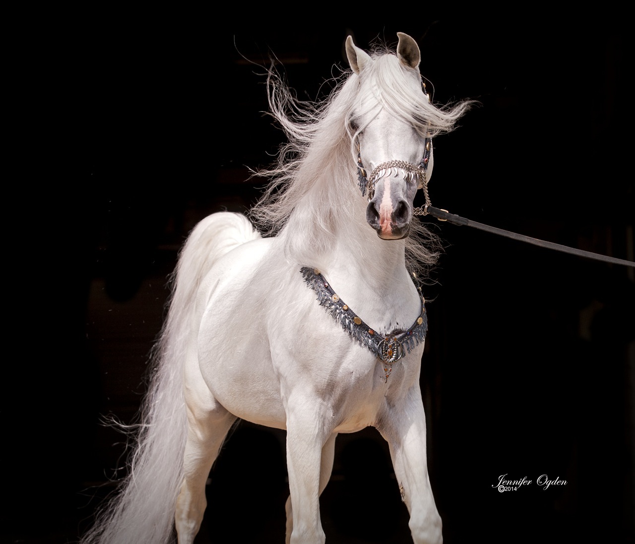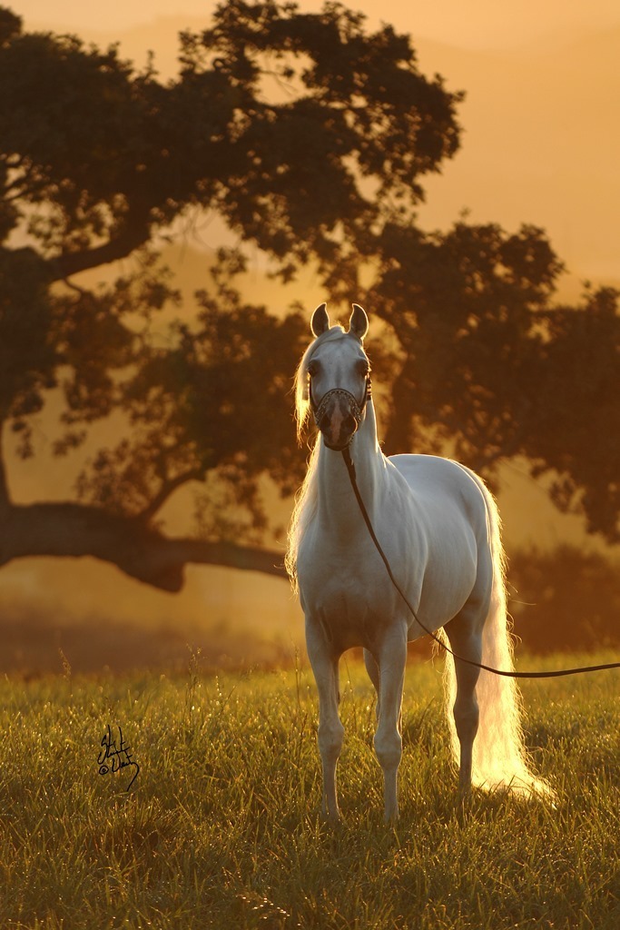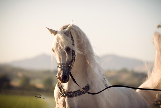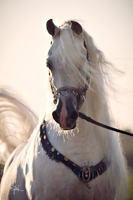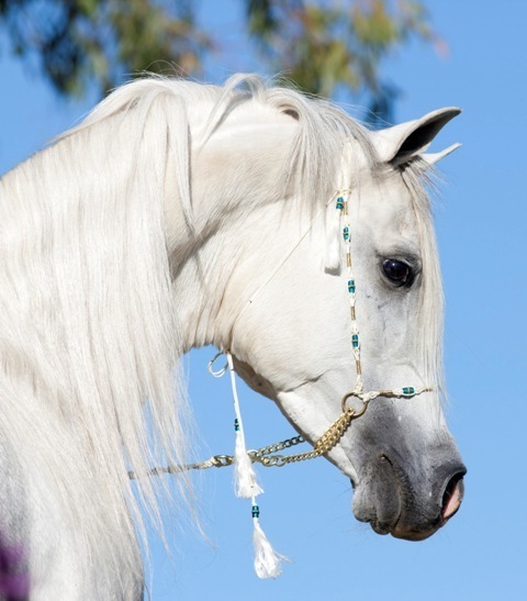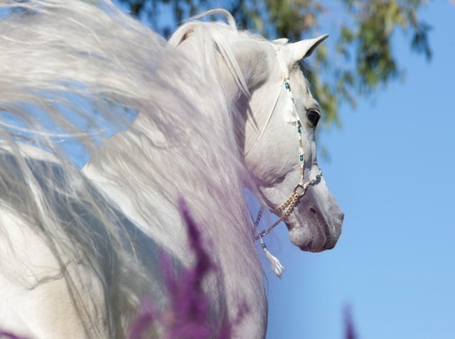 Of the white horse the Arabs say: “This is the mount of kings, because he brings good fortune and luck…Take the white like a silk flag, with a ring of black skin around his eyes.”