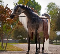 All the physical traits of the horses in this pedigree are quite similar; they are tall with a great lenth of neck, long legs, movement that is floating and powerful. The bonus is that also have a charisma that is magical, they make your heart pound when you see them come charging into an arena or just playing in a pasture. Their necks are set high and there is an amazing length of poll that lends itself to their overall carriage or wearing a bridle. There is a heavy blending of Saqlawi to the Dahman but some Hadban families and Kuhaylan woven in as well. This creates a beautiful tapestry of many diverse blood lines and amazing horses. Typically, you might see bays and predominately greys with a few chestnuts or even black mixed in, but all have a similar phenotype which is not always the case when horses are of different colors even though the same blood lines.